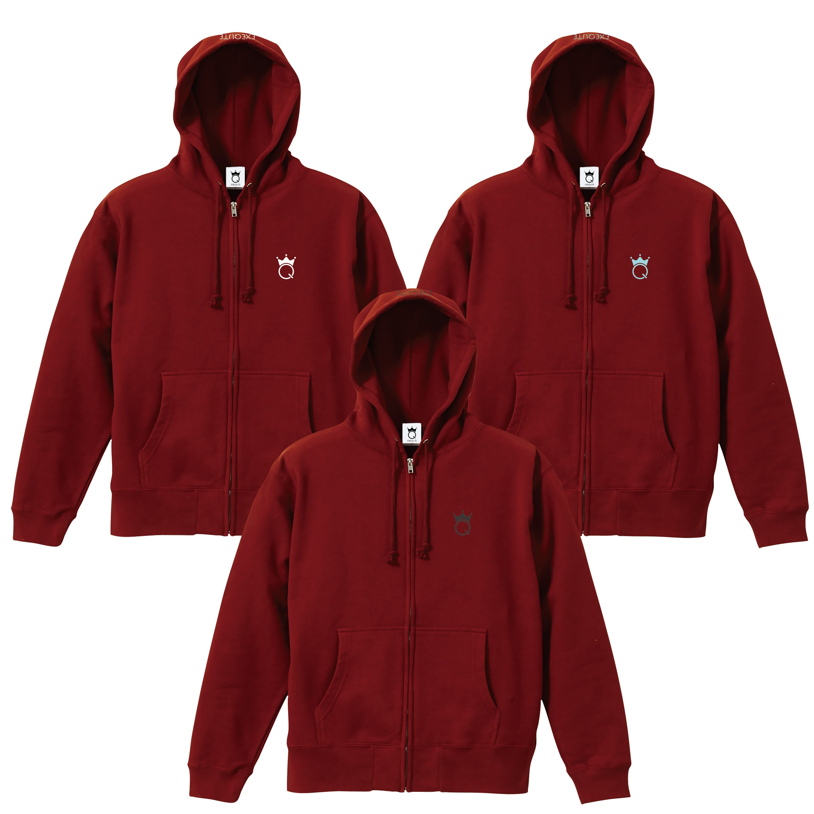 EXEQUTEロゴ刺繍ジップ付パーカーバーガンディ